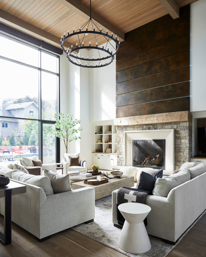 The chalet’s vision was to evoke the cozy ambiance of a traditional ski lodge while elevating it with contemporary touches. The result is a stunning combination of transitional millwork, modern light fixtures, and luxury upholstery.