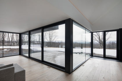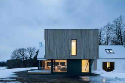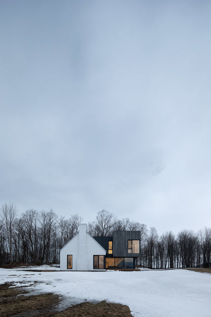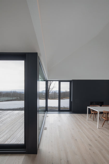 This once classic farmhouse in Quebec's Eastern Townships with its cedar-clad addition brings a striking contrast between old and new. The open, contemporary layout offers stunning views in both the interior and exterior. The minimal interior helps define the views of the great outdoors throughout all 4 seasons. The interior was kept predominately white, providing a perfect canvas for the homeowner’s art collection. Dover European oak wide plank adds subtle texture and warmth to the space, while staying in line with the minimal approach.