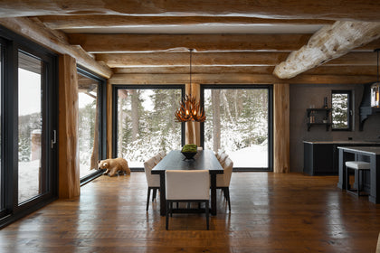 For our British homeowners, this hilltop location, with its unforgiving rock terrain, would be the site of a new family adventure. Only, instead of a log cabin, they created an unparalleled post and beam lodge with a distinctly modern feel.