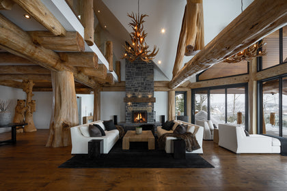 Inspired by the HGTV phenomenon, Timber Kings, the owners of this luxurious lodge in the Laurentian Hills sought to design a one-of-a-kind cedar cabin not found in their native UK. They chose Quebec's Mont Tremblant as the backdrop for an adventurously modern take on pioneer life.