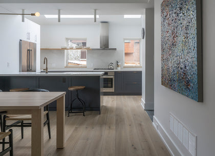 Private Residence in Toronto, ON. A modern setting that is calm and refreshing, with bright walls and windows that allow natural light to flood in creating extra ambience in an already bright atmosphere.