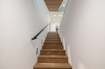 Striking art and curated fixtures bring creative flourishes and, at the home’s core, a dramatic glass-lined floating staircase is a hand-crafted work of art in its own right.