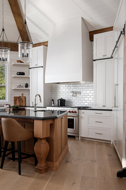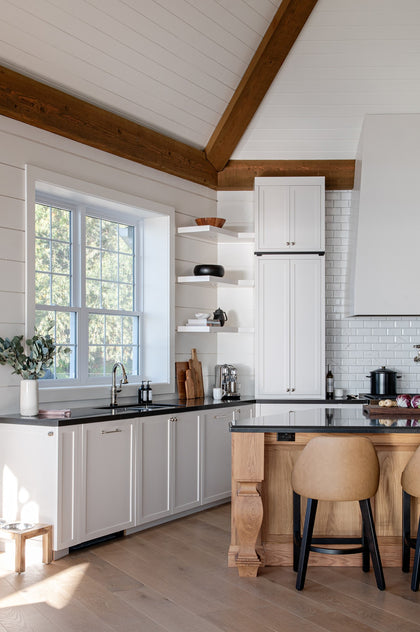 Jesse Austin and his skilled team at Austin Builders meticulously crafted timber wall elements, adding an authentic touch to the interiors. Having worked with Northern Wide Plank products before, Austin Builders was quick to recommend NWP engineered hardwood flooring selection to designer Joanne Dolan: