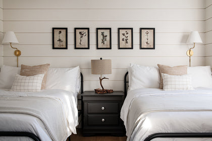 Inspired by the cherished memories of the client's family home in upstate New York, the vision for this space was clear – to create a haven that echoed the inviting and comforting aura of those childhood memories. Joanne Dolan, with her artistic prowess, breathed life into this vision. The white oak planks, with their 9" (229mm) width and captivating blend of grey and brown tones, emerged as the heart of the home, embodying both aesthetic splendor and decided durability. The varied shades and natural textures of the wood flooring convey a sense of heritage, as though it has been a feature of the space for generations.
