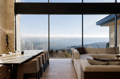 Framed by early light and autumn foliage, this residence reveals itself as part of the hillside, its clean lines and expansive windows hinting at thoughtful design. It offers a peaceful yet connected luxury retreat with elevated views that create a refined and welcoming experience where architecture and nature exist in quiet harmony.