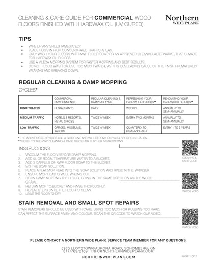 This document includes some common tips, recommended cleaning frequencies, along with instructions on how to properly take care for your Northern Wide Plank hardwax oil wood floors in commercial environments.